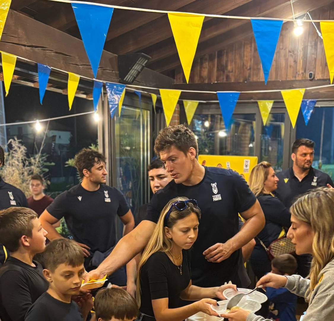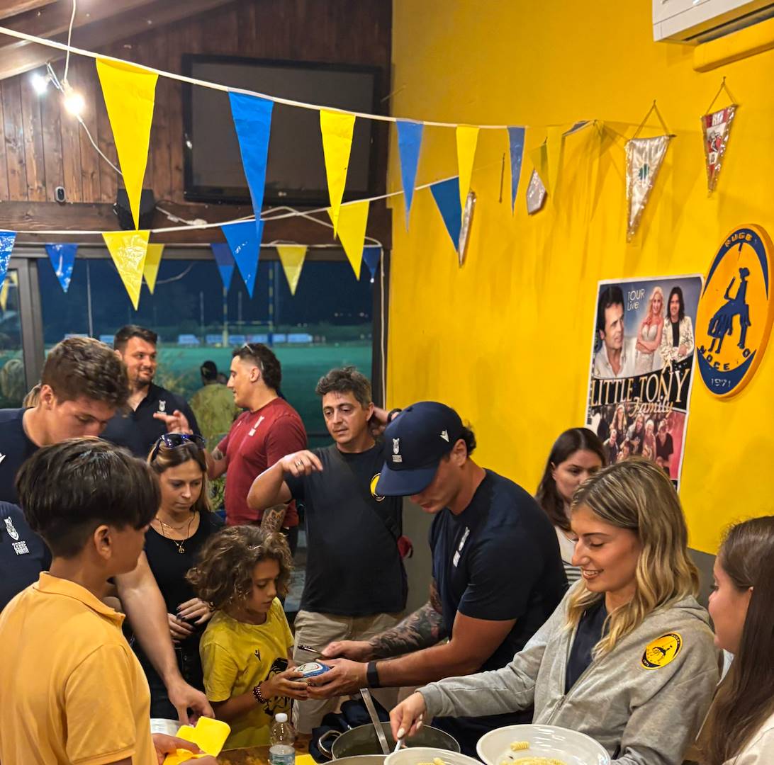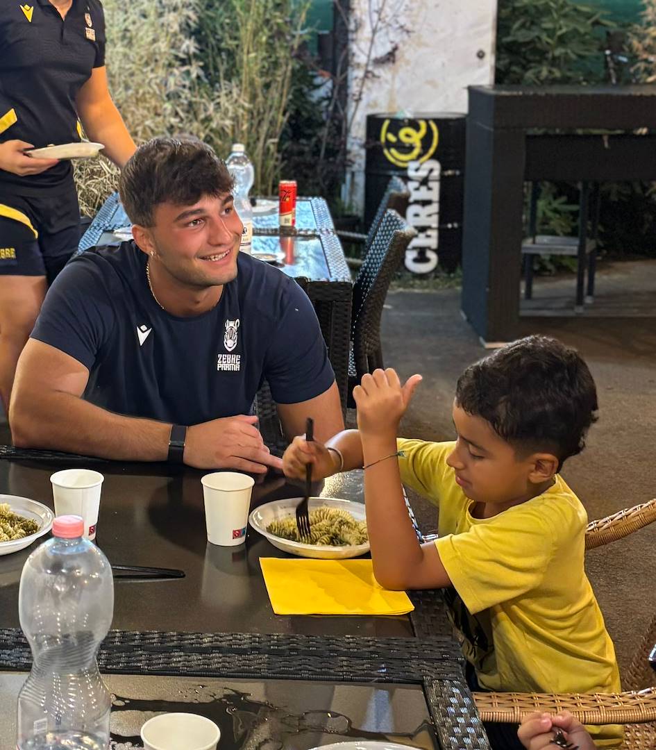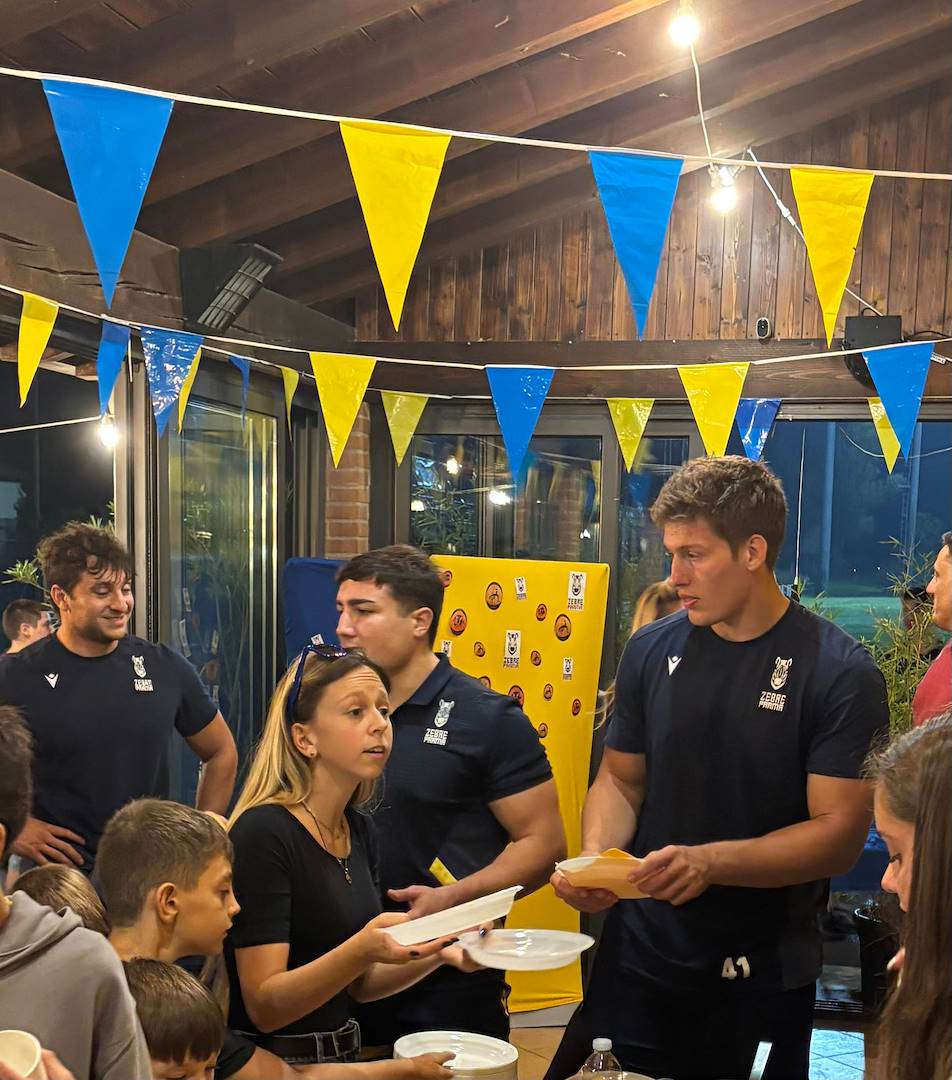 Genitori, tifosi, amici e appassionati hanno accolto i giocatori e lo staff tecnico delle Zebre Parma per vivere insieme una serata di condivisione, appartenenza e passione. Un finale di grande gioia e festa con la cena insieme agli atleti internazionali delle Zebre.